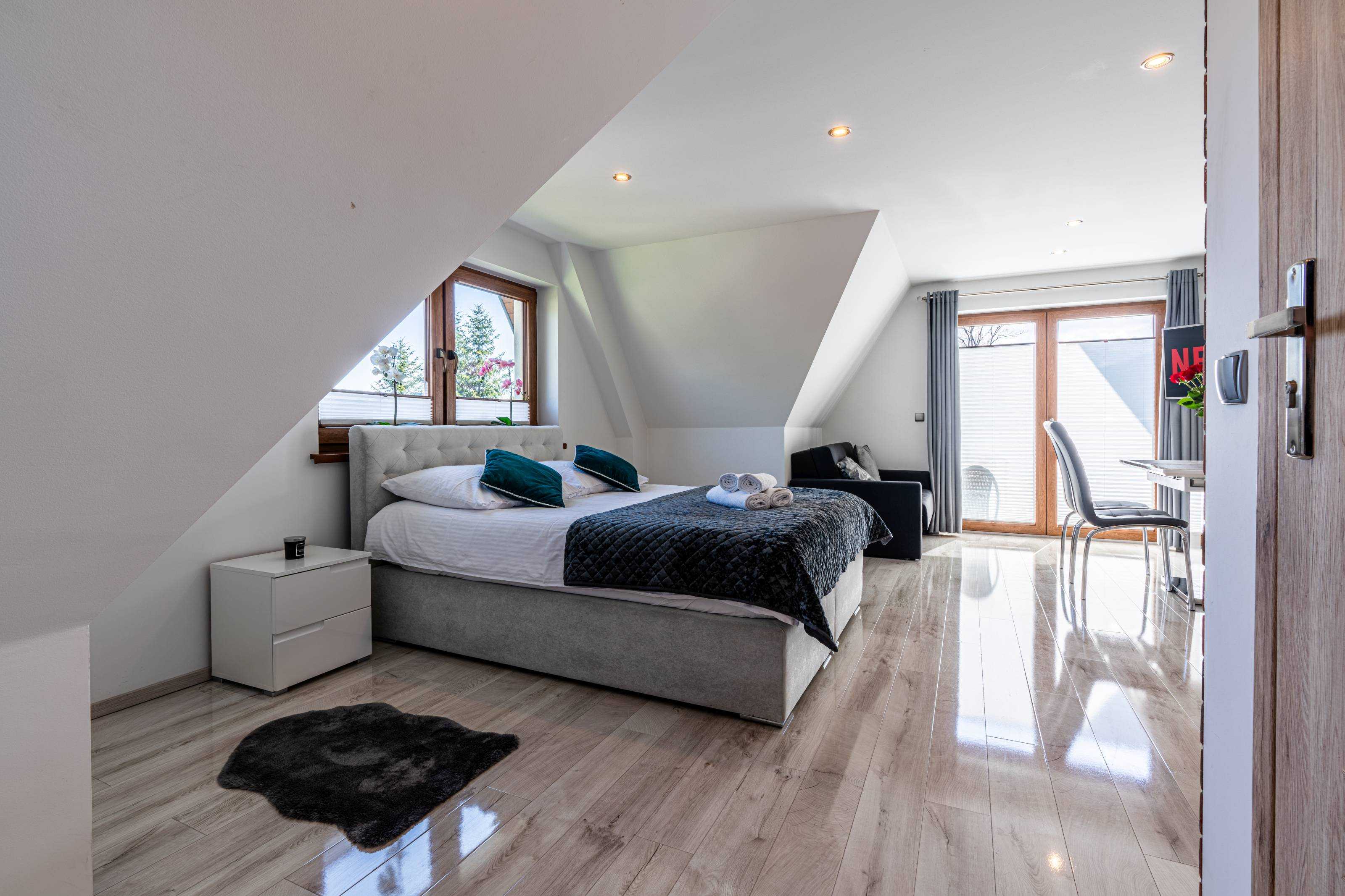 Apartament posiada balkon, z którego rozpościera się magiczny widok na Giewont i panoramę Tatr.