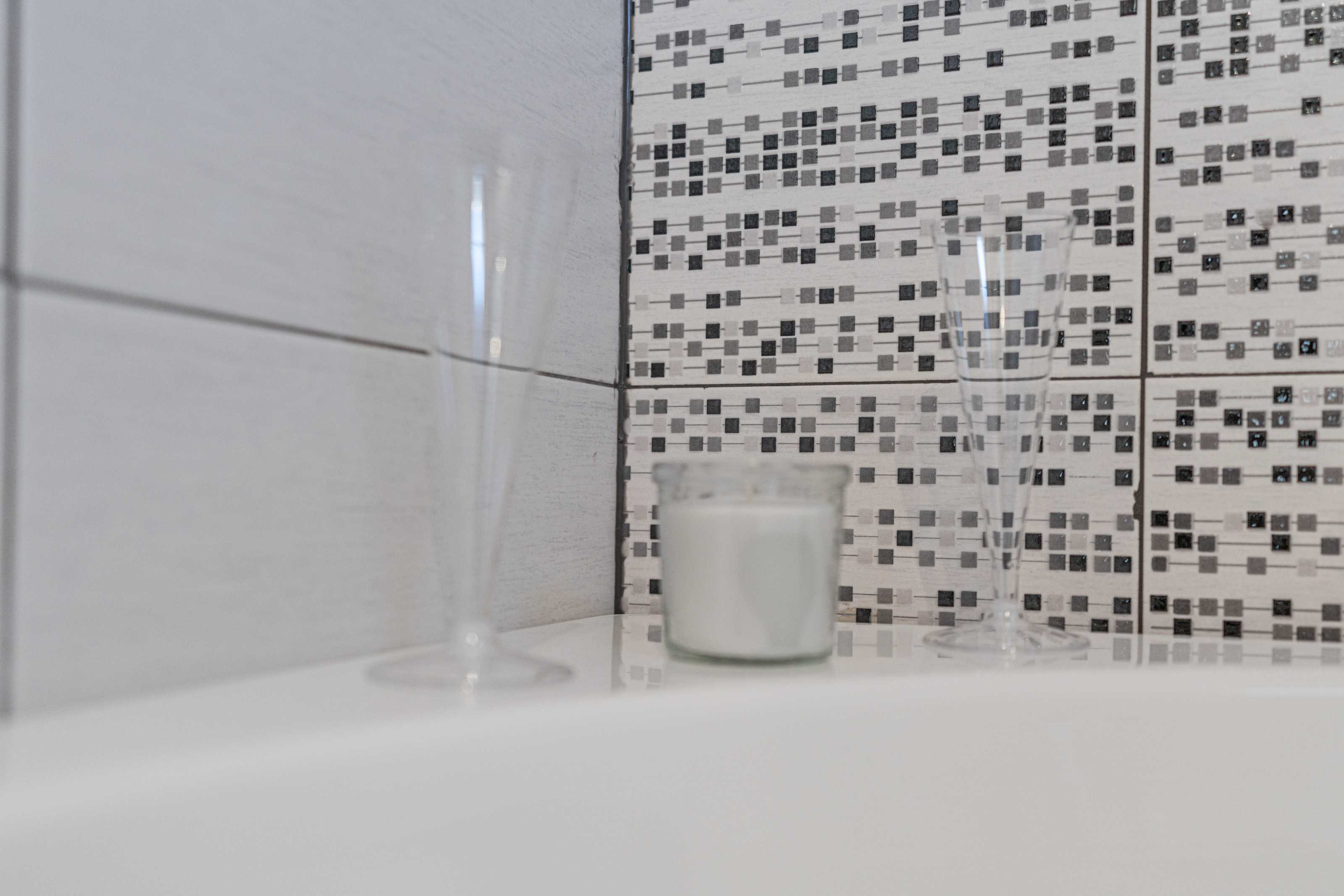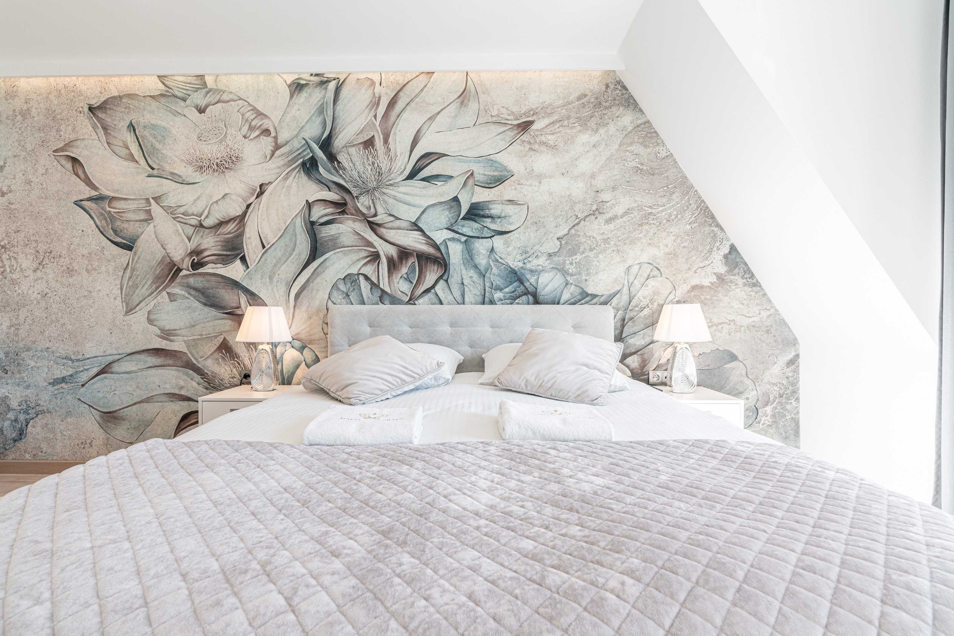 Apartament znajduje się na drugim pietrze. Posiada salon z balkonem i aneksem kuchennym oraz łazienką z prysznicem. Osobną sypialnie z balkonem i łazienką z jacuzzi.
