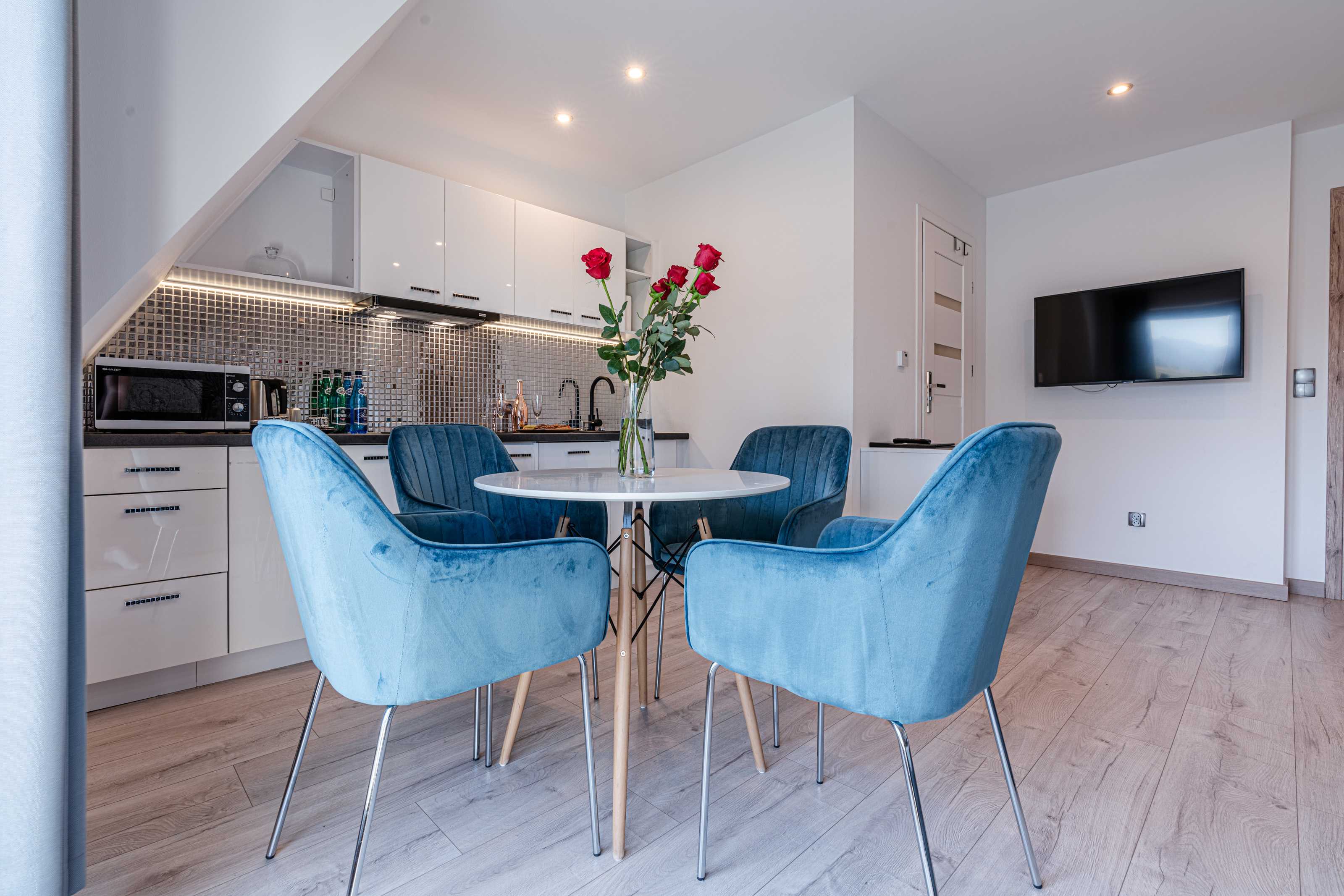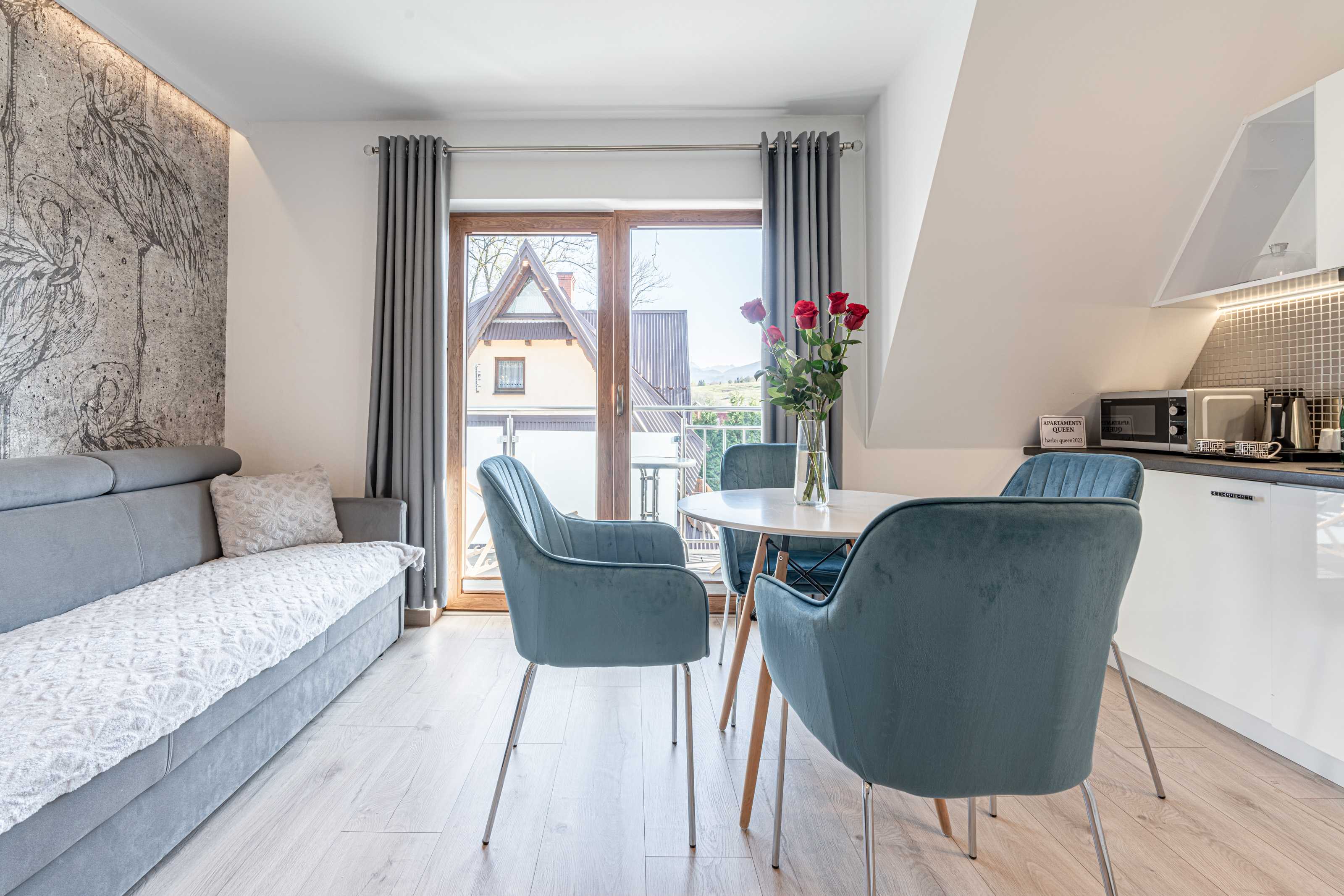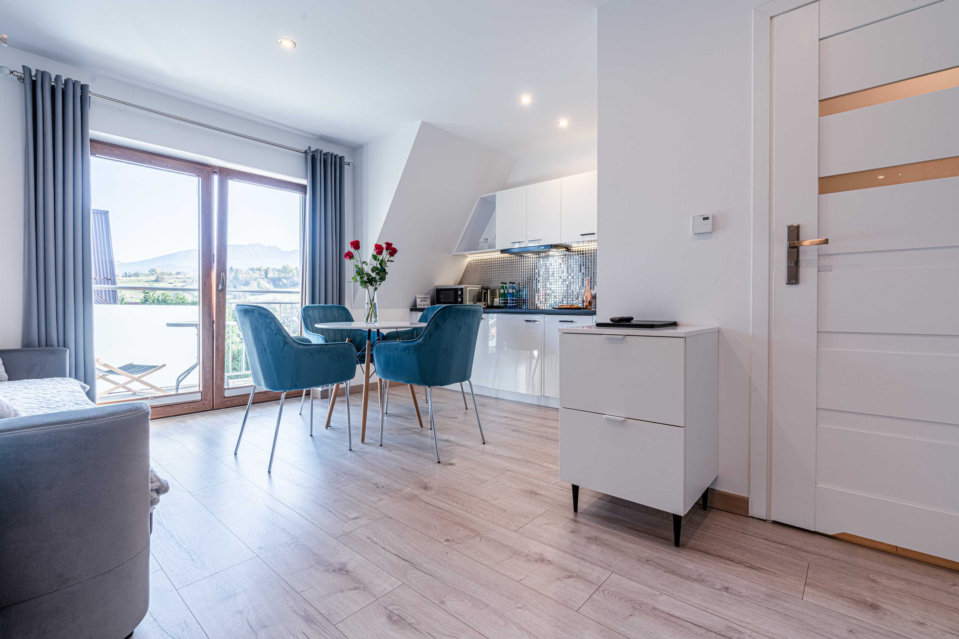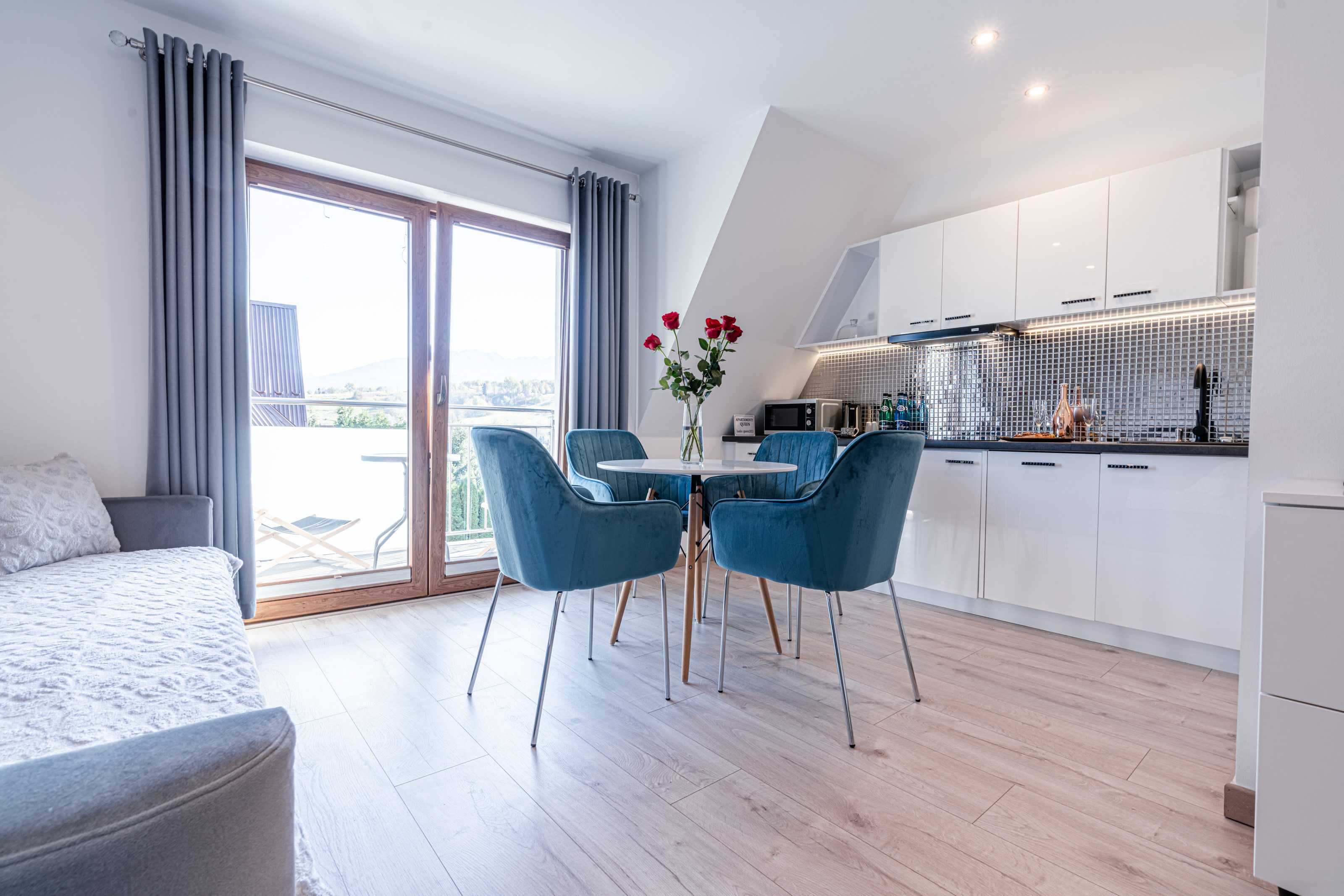 Wi-fi oraz telewizor z dostępem do netflixa to kolejne udogodnienie, które umili Wam beztroskie chwile w naszym miejscu.Apartament posiada balkon, z którego rozpościera się magiczny widok na Giewont i panoramę Tatr.